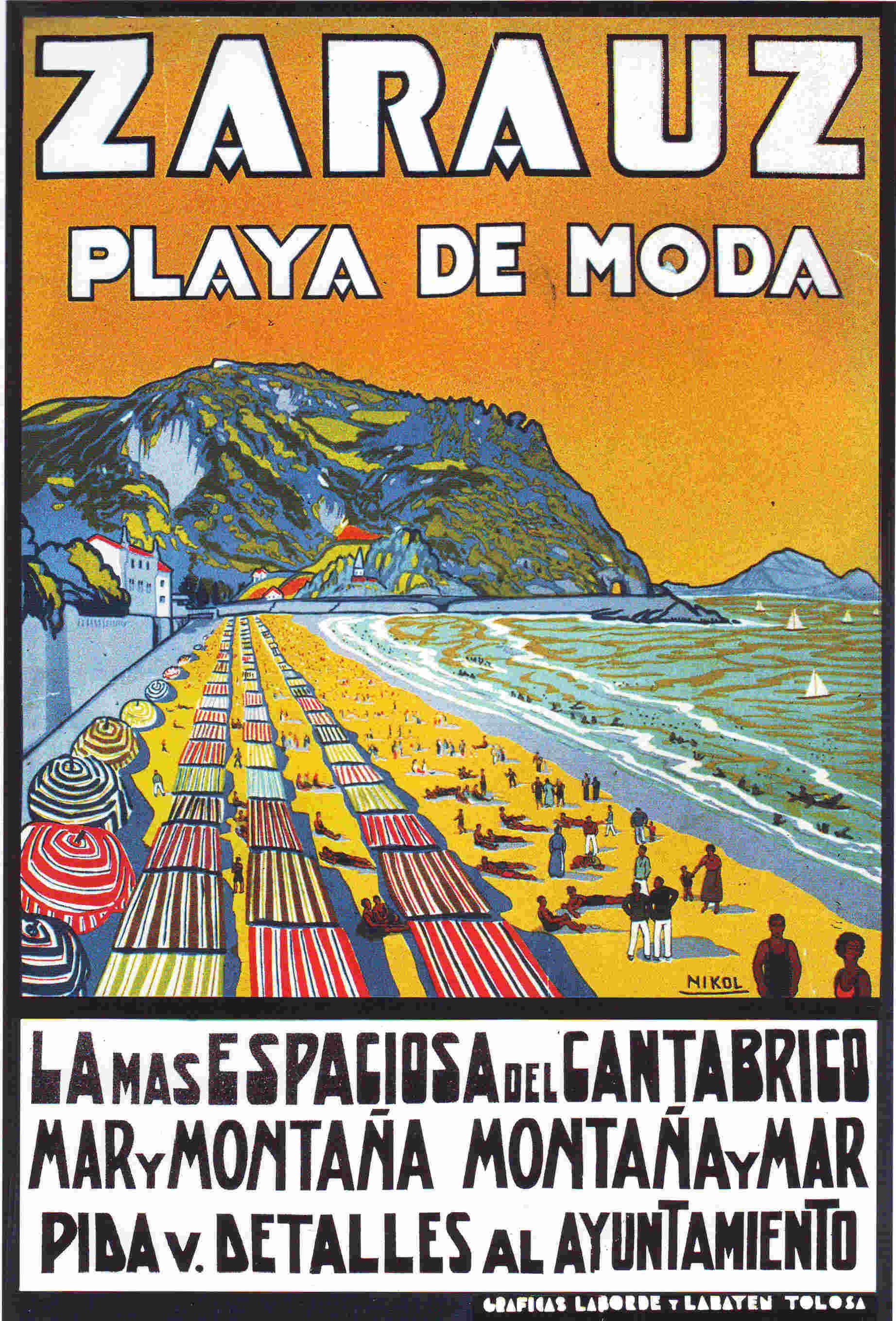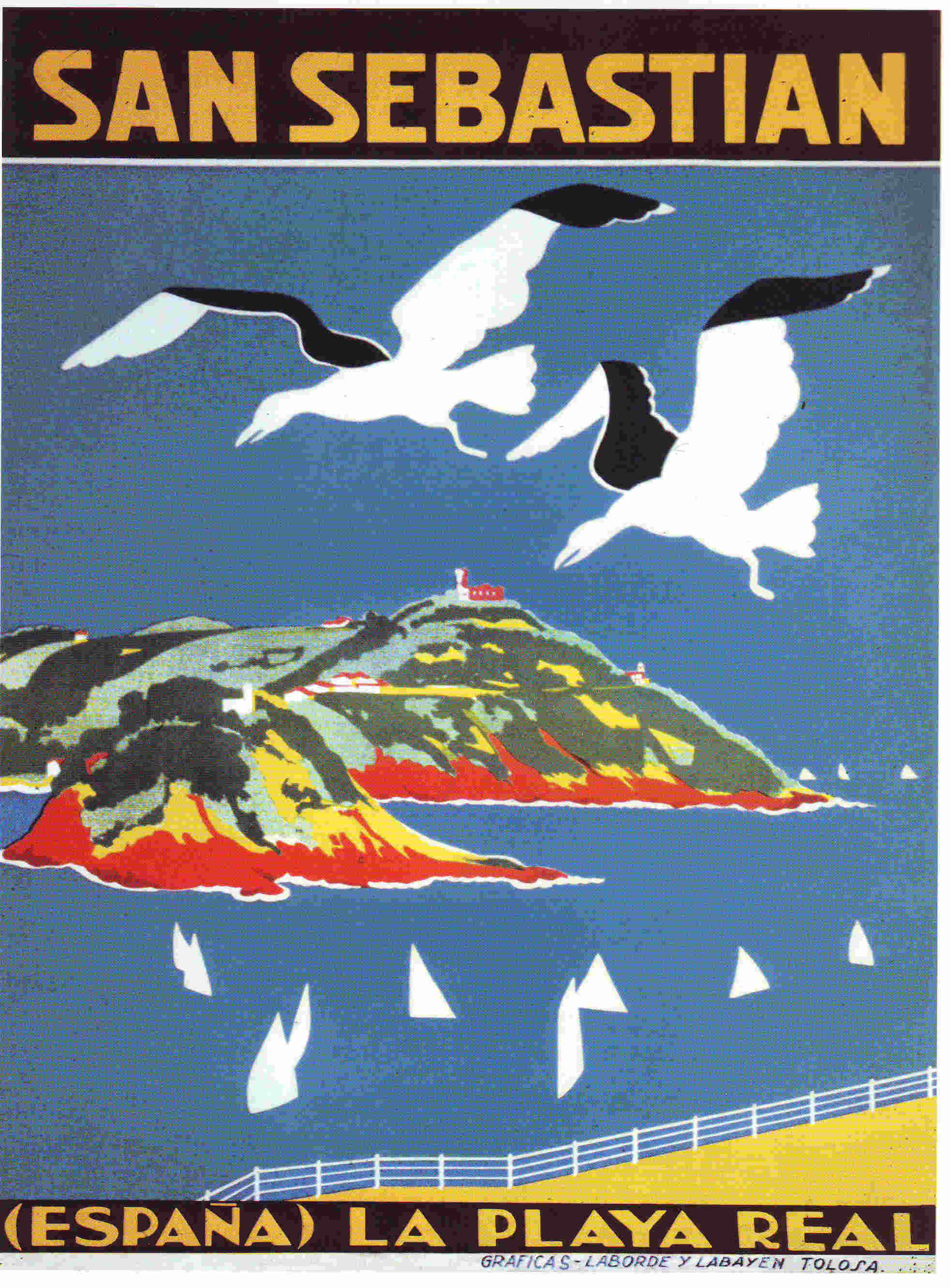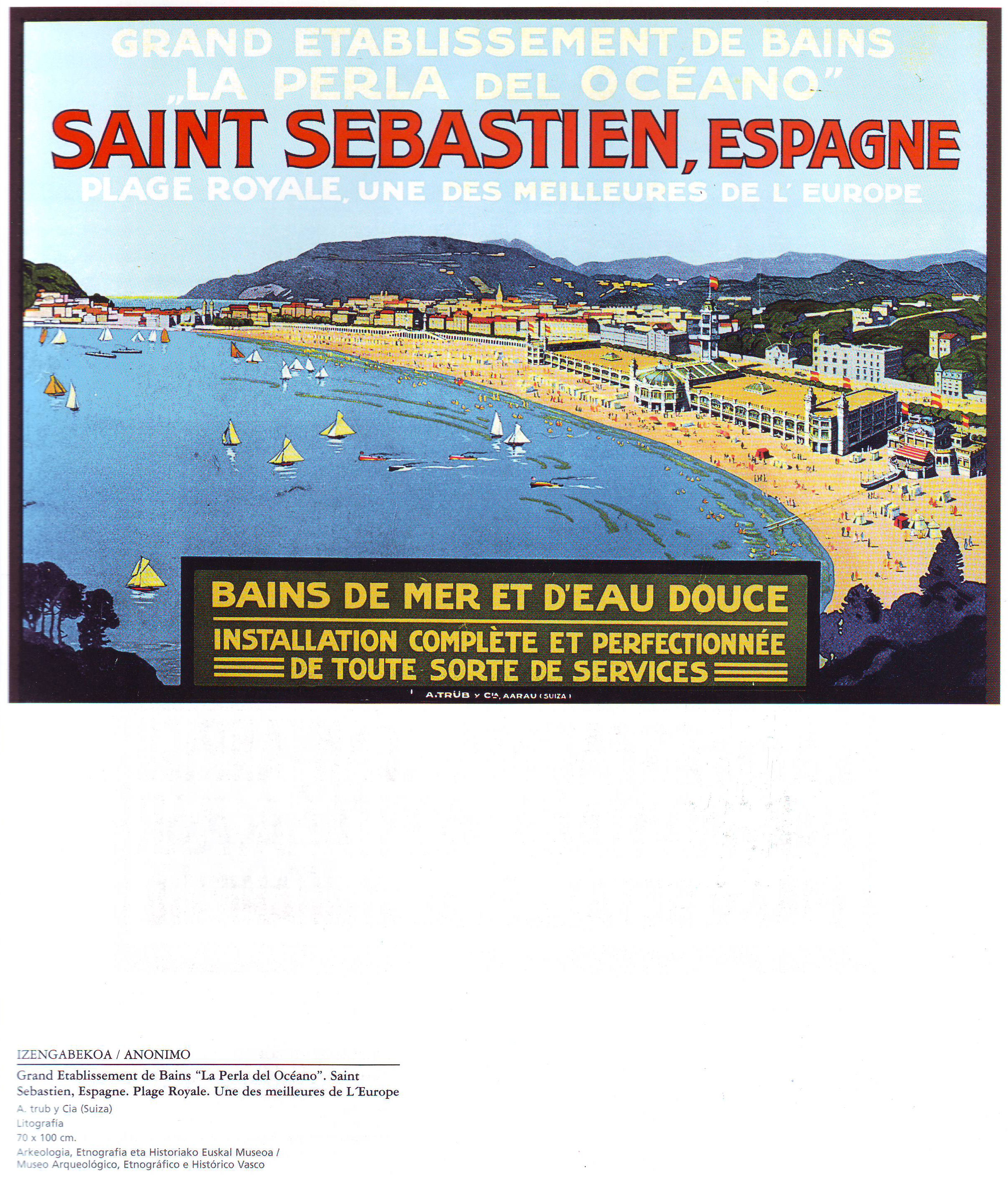 | Cartel de San Sebastián en francés | San Sebastián La Playa Real | San Sebastián Clima ideal | Anzuelos Mustad de Tolosa | Anzuelos Mustad de Tolosa |